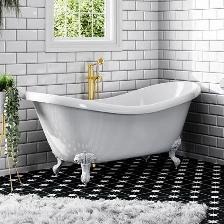 The Lancaster free-standing traditional style bath shower mixer tap will bring a touch of luxury to any bath. Manufactured from solid brass with a eye catching polished chrome finish, features a classic design and elegant swan-neck spout, this tap will make a striking focal point in your bathroom. You can adjust water flow and temperature effortlessly with the stylish white ceramic single lever handle. For use with free-standing bath tubs, tap includes a traditional style shower handset and flexible hose.
